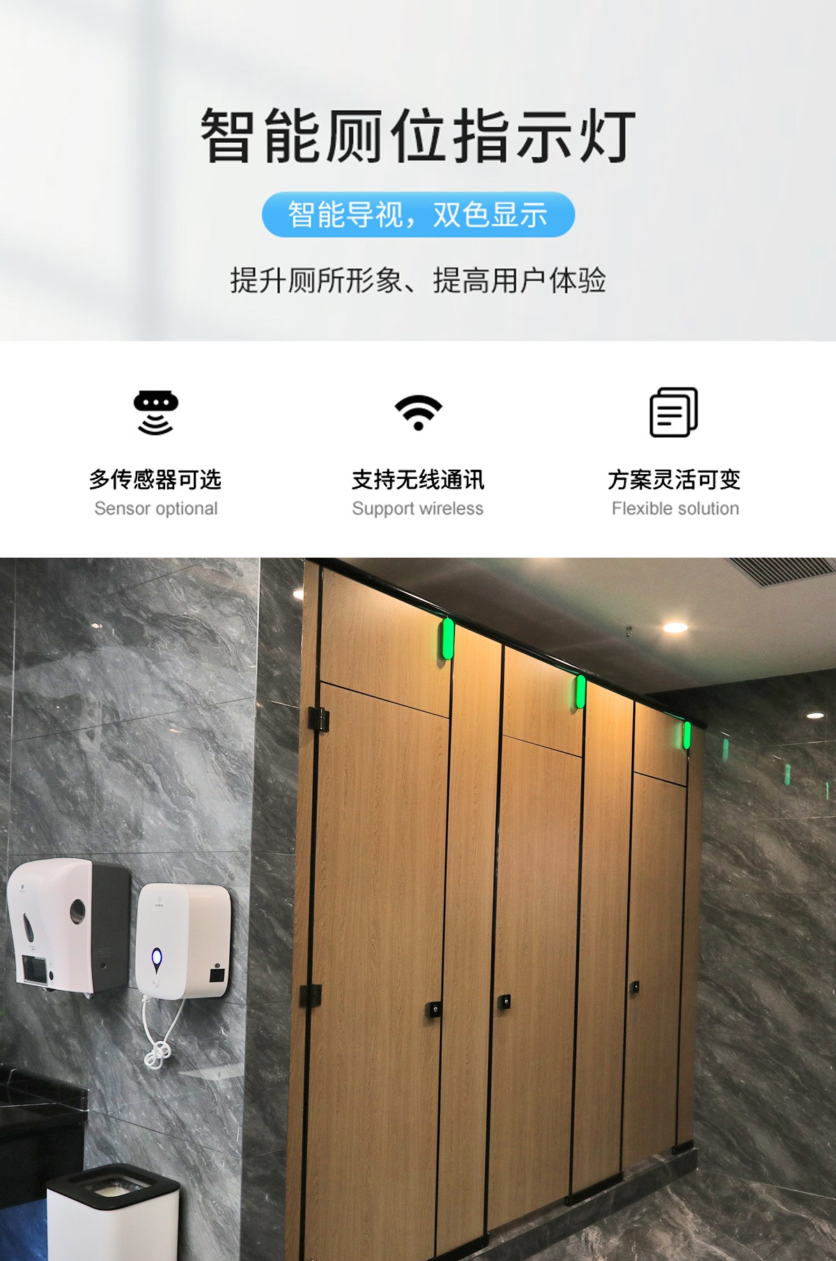 安裝方式:卡扣式(橫裝、豎裝)說明:通過紅綠燈指示蹲坑與坐便有人無人信息,采用有線供電方式,控制采用無線LORA信號傳輸,LED造型燈