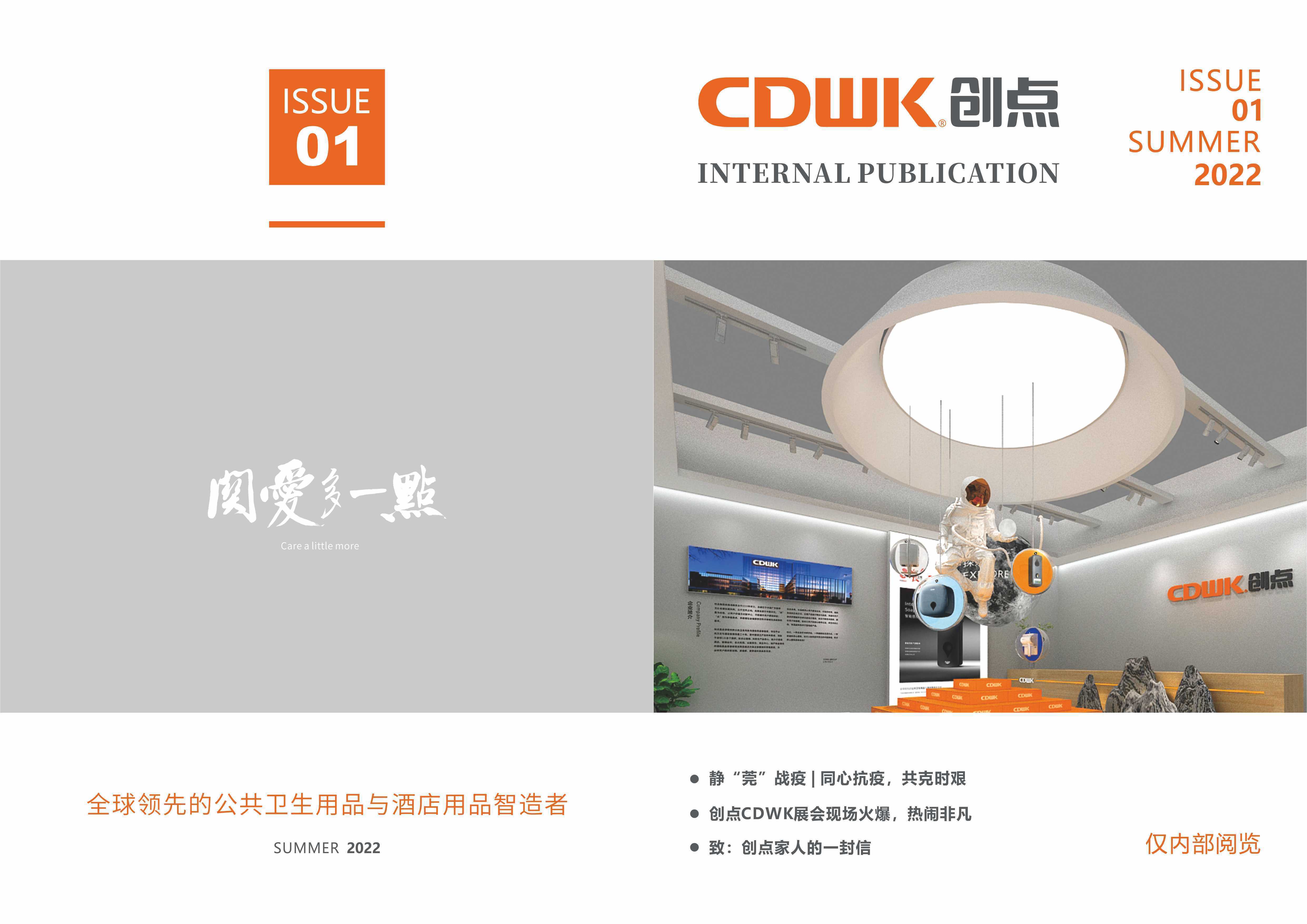 CDWK創(chuàng)點(diǎn)季刊正式上線,將帶您回顧集團(tuán)焦點(diǎn)新聞,領(lǐng)略創(chuàng)點(diǎn)家人們的職場(chǎng)風(fēng)采,傳遞有溫度的職場(chǎng)干貨,每一期的收稿,審稿、修改、編輯、校核都凝聚了每位家人們的心血和汗水,用鏡頭和文字記錄CDWK創(chuàng)點(diǎn)大家庭前進(jìn)的每一步“腳印”,充分展示了創(chuàng)點(diǎn)人的精神面貌和文化才情,內(nèi)容豐富多彩。我們將秉承初心,堅(jiān)持不懈,努力將其越辦越好!