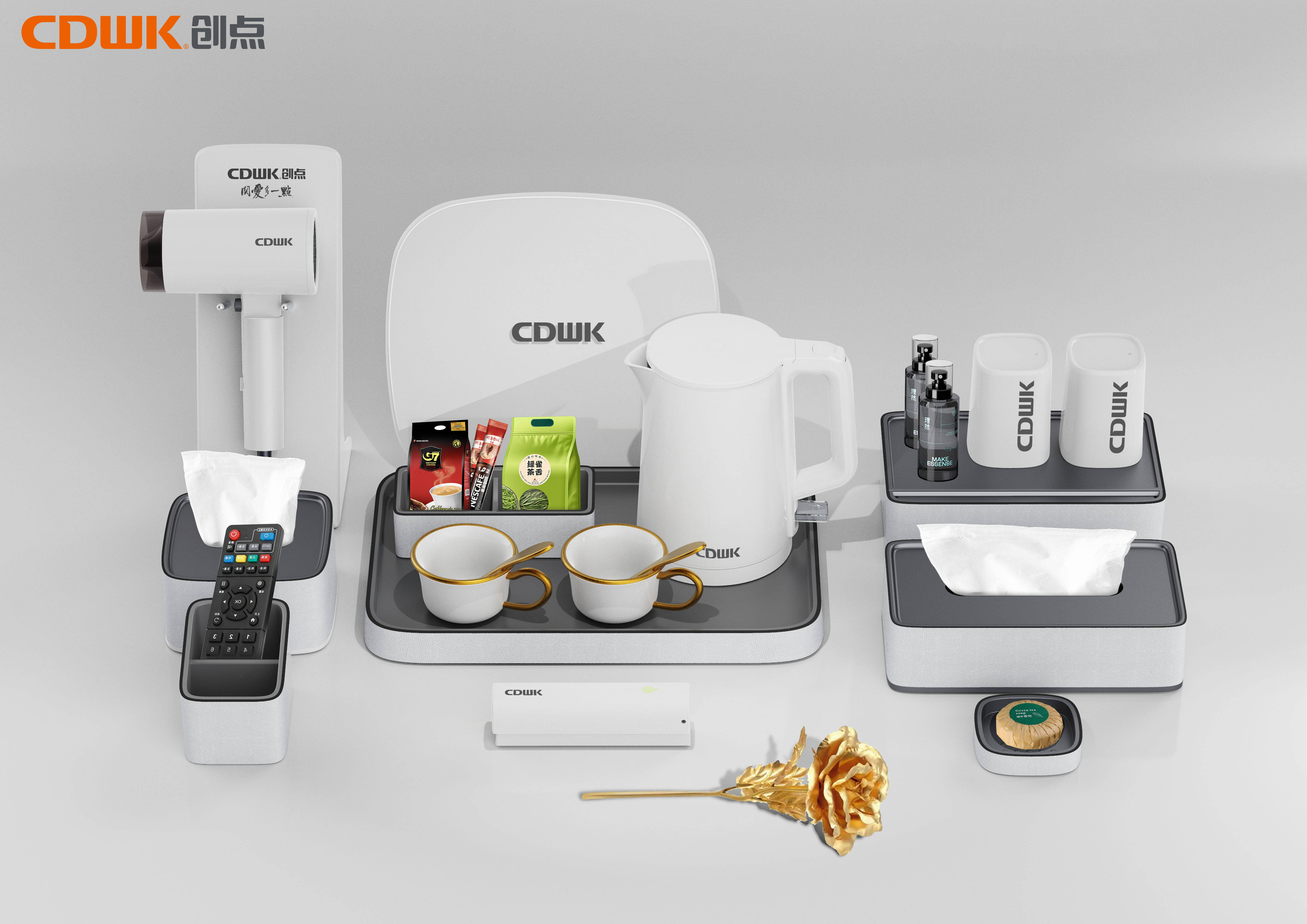 CDWK創(chuàng)點(diǎn)為全國(guó)各地品質(zhì)酒店提供全方位的客房用品解決方案,用技術(shù)創(chuàng)新打造舒適體驗(yàn)。CDWK創(chuàng)點(diǎn)酒店整體解決方案一應(yīng)俱全,包括酒店皂液器、吹風(fēng)機(jī)、感應(yīng)垃圾桶、紙巾盒、收納盒、咖啡機(jī)、電子秤、熱水壺、托盤、茶具等產(chǎn)品,具有現(xiàn)代感的無(wú)縫功能性設(shè)計(jì),堅(jiān)固耐用,外觀既圓潤(rùn)不易傷手,也包容性極強(qiáng),易于融入酒店客房?jī)?nèi)部環(huán)境,巧妙匹配安全的需求。