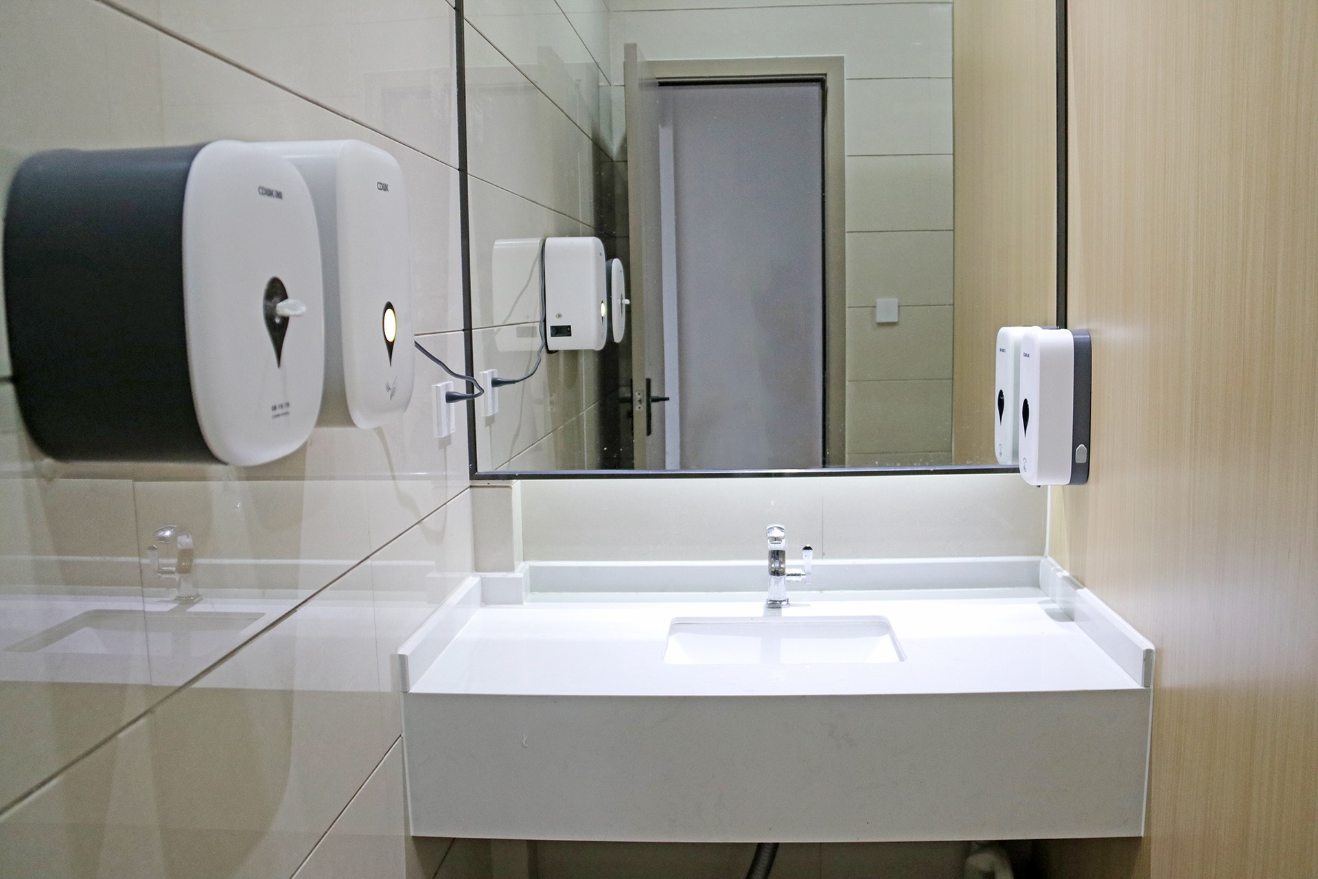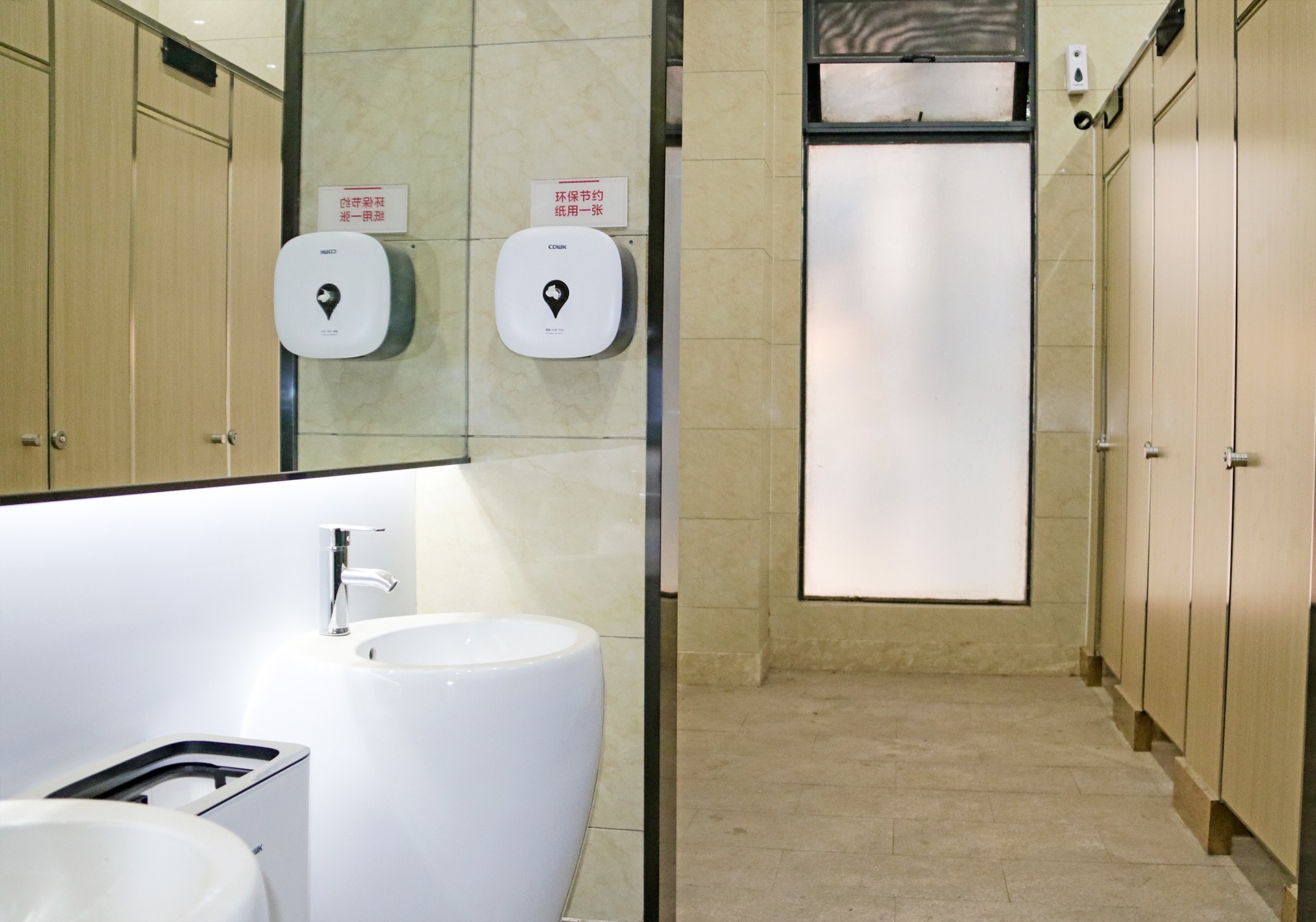 人們通過屏幕可以看到當(dāng)日的人流量、當(dāng)前的使用情況外,還能實(shí)時(shí)監(jiān)控廁所內(nèi)氨氣和硫化氫等有臭/毒氣體與環(huán)境濕度與溫度,自動(dòng)控制空調(diào)、排風(fēng)系統(tǒng)結(jié)合自動(dòng)噴香機(jī)調(diào)整空氣環(huán)境,營(yíng)造干凈舒適的廁所環(huán)境。