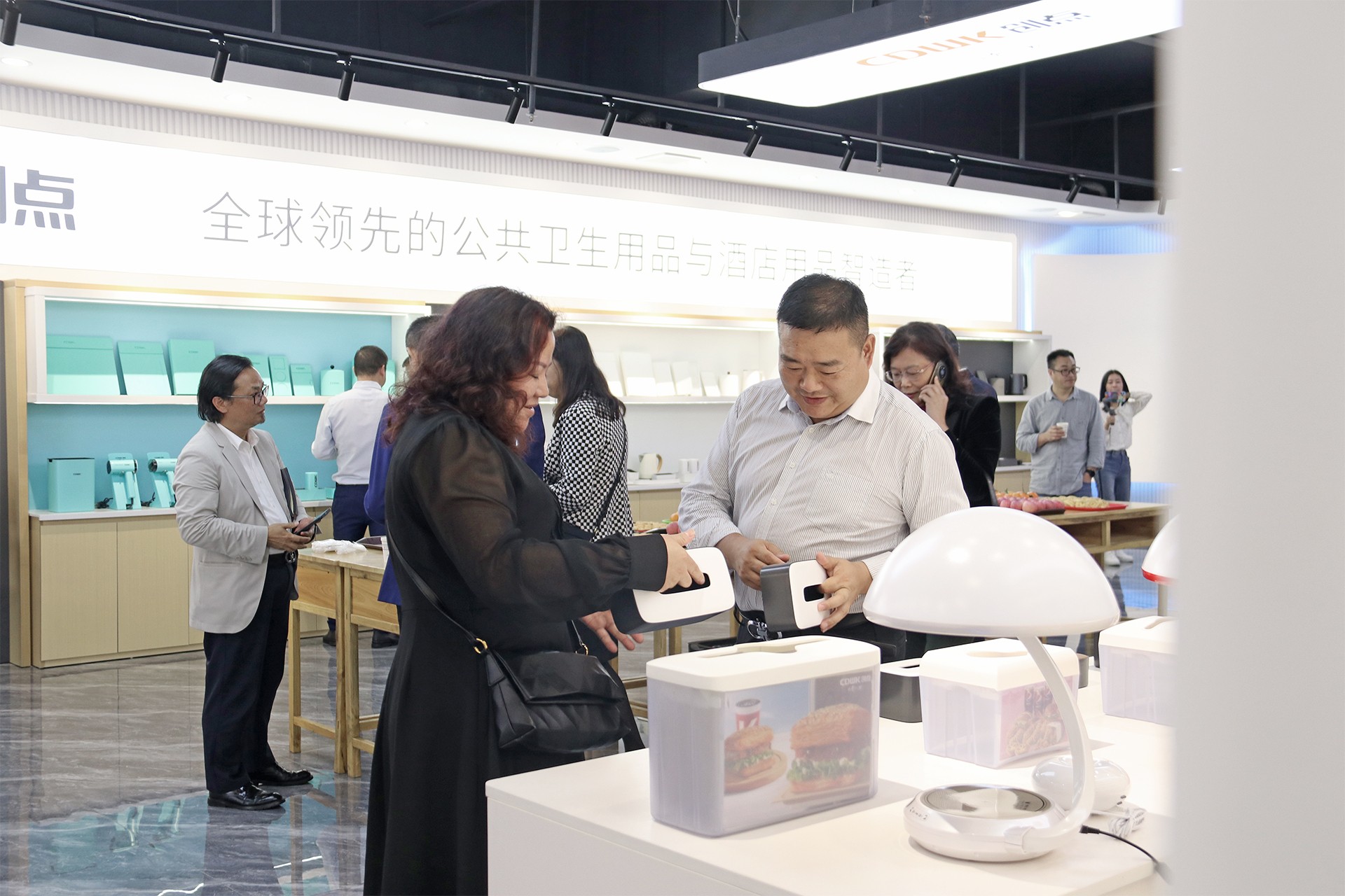 在產(chǎn)品展廳現(xiàn)場,公司給大家準(zhǔn)備了豐富的下午茶點(diǎn),現(xiàn)場人兒一遍享受美食一遍參觀創(chuàng)點(diǎn)產(chǎn)品,各酒店單位的領(lǐng)導(dǎo)對(duì)我們展廳的產(chǎn)品有著濃厚的興趣,由公司龐總、楊總、王總、夏總親自向各位領(lǐng)導(dǎo)介紹,大家紛紛對(duì)創(chuàng)點(diǎn)的產(chǎn)品表達(dá)了高度認(rèn)可與贊揚(yáng),并表示出合作的想法,實(shí)現(xiàn)發(fā)展共贏。