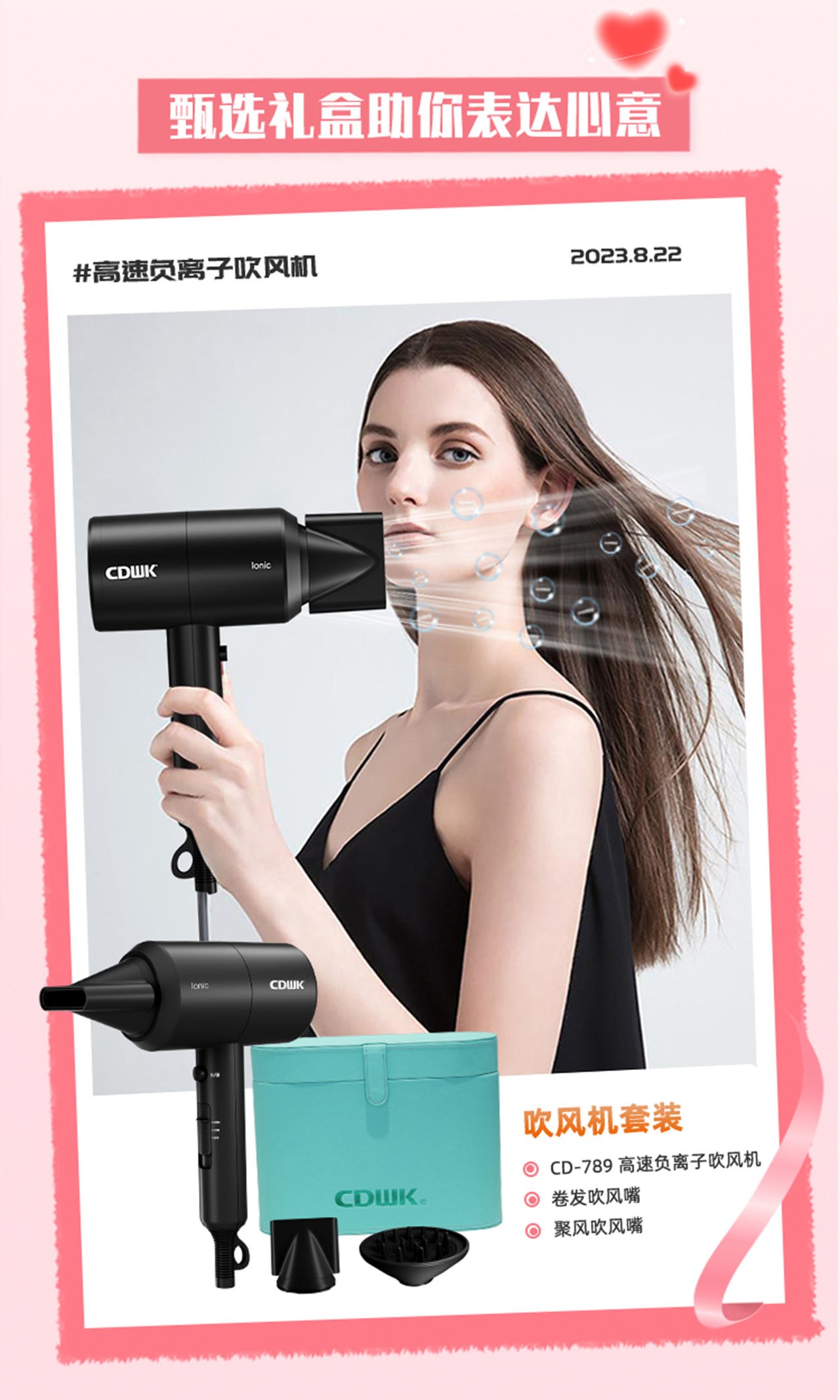 精心打造吹風(fēng)機(jī)禮盒,充滿用心與關(guān)愛,給愛人送去安全、高效的吹風(fēng)體驗,還有每一天的滿滿自信與魅力。
