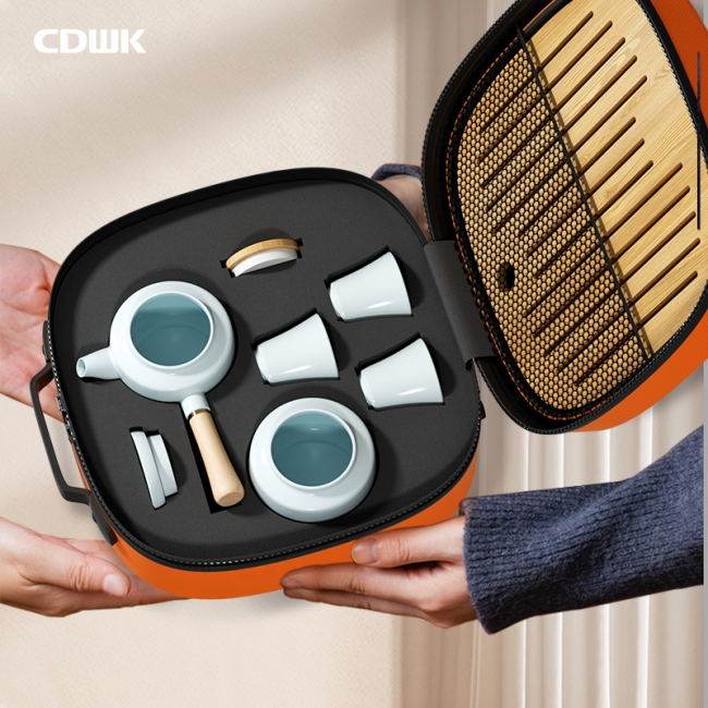 麻雀雖小,五臟俱全。CDWK創(chuàng)點(diǎn)茶具整體身材小巧,但功能性強(qiáng),組合收納結(jié)構(gòu),能完整地收納整套茶具。去繁取簡(jiǎn),讓喝茶少一點(diǎn)規(guī)矩,多一點(diǎn)品茶意趣,隨時(shí)方便與志趣相投之人共享茶香。別具一格的小包收納,兼具便攜與美觀,既能夠宜室宜家,也能夠旅行使用。